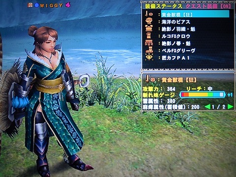 胴:絶影ノ羽織・魁 Lv7 123 笛吹珠G 気短珠G 軽足珠G