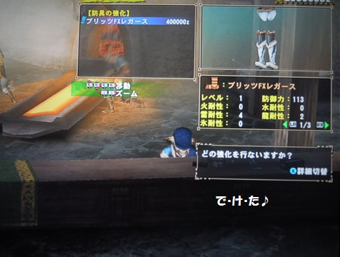 防御力:743 火耐性:3 水耐性:3 雷耐性:11 氷耐性:3 龍耐性:7