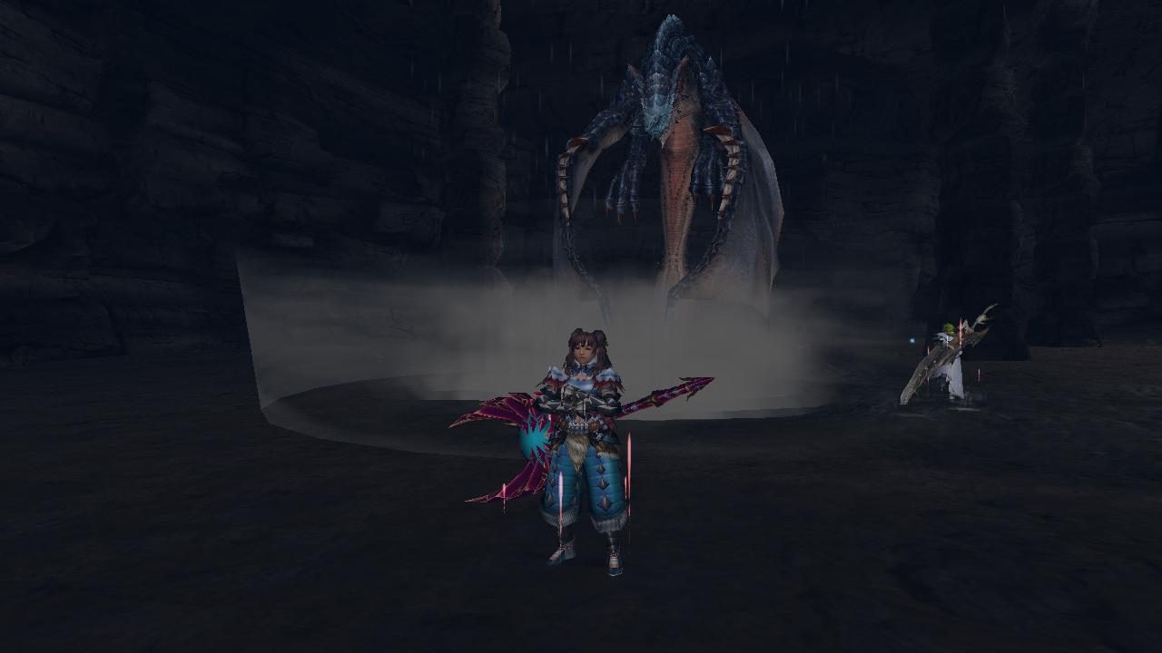 クエ中の団員の戦ってる姿を